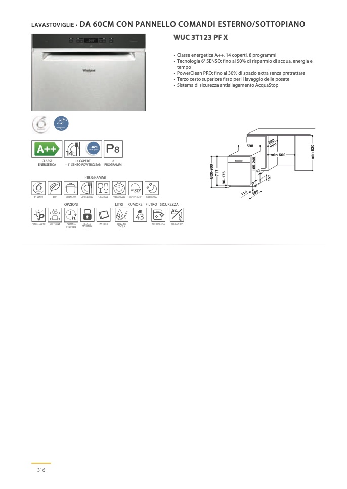 • Classe energetica A++, 14 coperti, 8 programmi