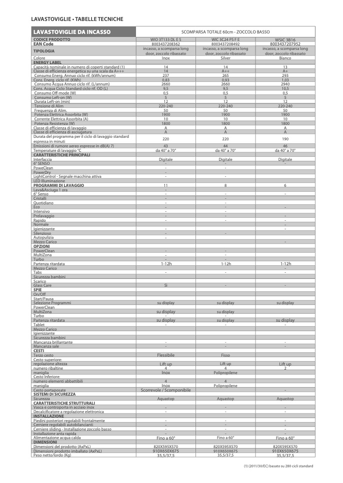 (1) (2011/30/EC) basato su 280 cicli standard