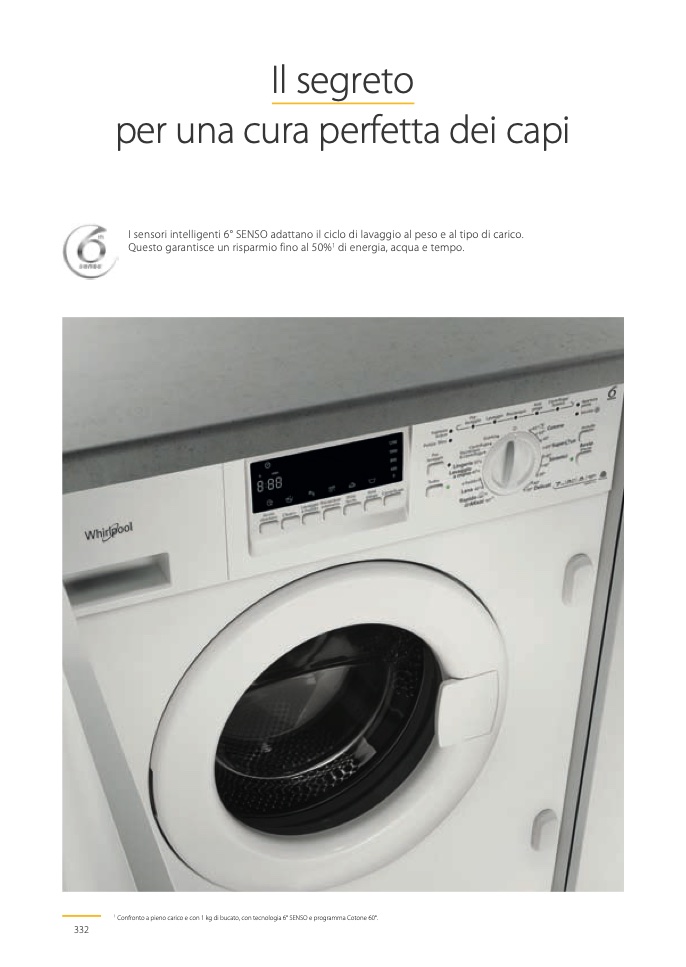 I sensori intelligenti 6° SENSO adattano il ciclo di lavaggio al peso e al tipo di carico.
