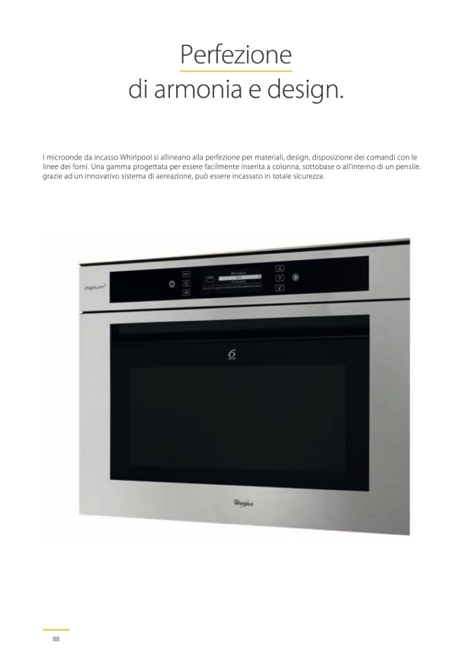 I microonde da incasso Whirlpool si allineano alla perfezione per materiali, design, disposizione dei comandi con le