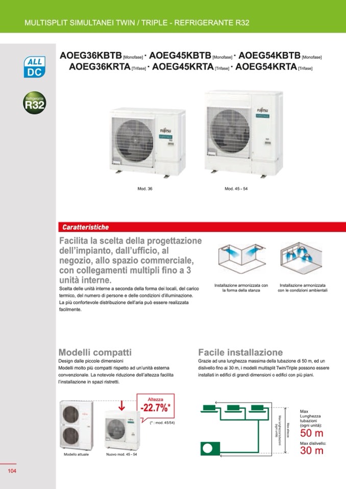 dislivello fino ai 30 m, i modelli multisplit Twin/Triple possono essere
