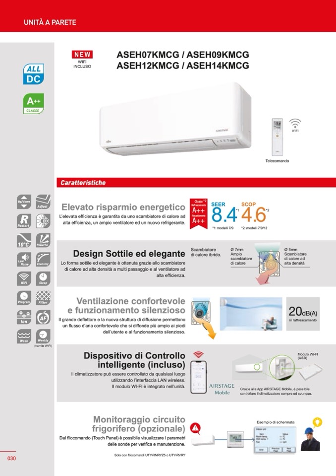 alta efficienza, un ampio ventilatore ed un nuovo refrigerante.