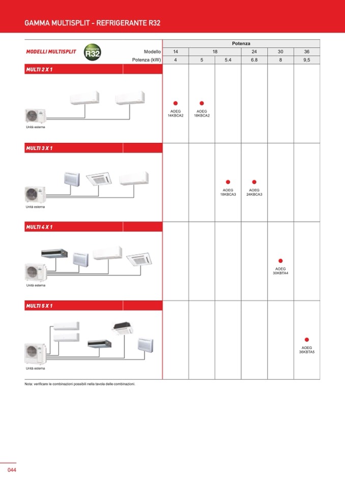 Nota: verificare le combinazioni possibili nella tavola delle combinazioni.