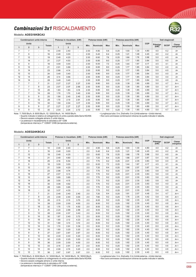 • La potenza in riscaldamento è calcolata a 20° CDB