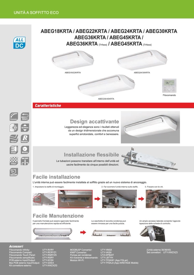 L’unità interna può essere facilmente installata al soffitto grazie ad un nuovo sistema di ancoraggio.