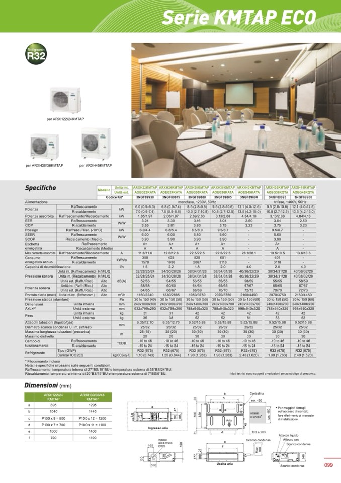 Raffrescamento: temperatura interna di 27°BS/19°BU e temperatura esterna di 35°BS/24°BU.