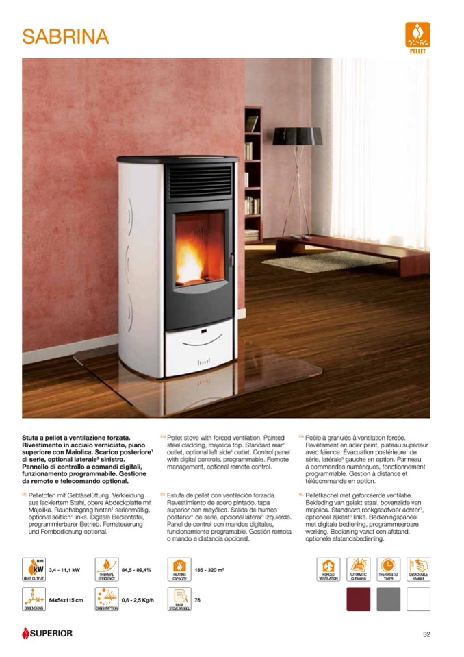 Pelletkachel met geforceerde ventilatie.