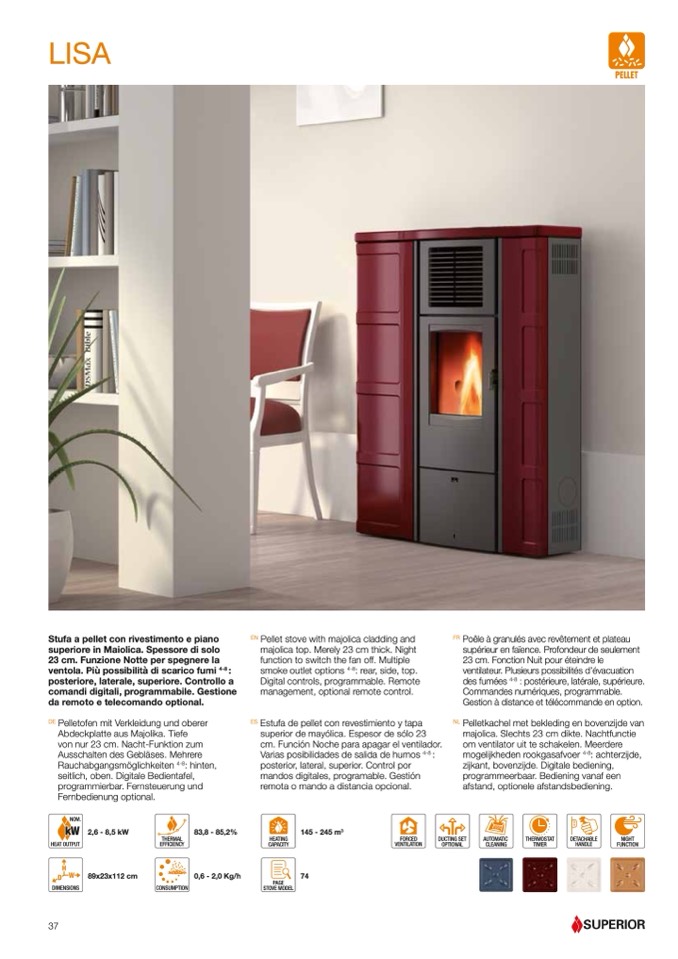 Estufa de pellet con revestimiento y tapa