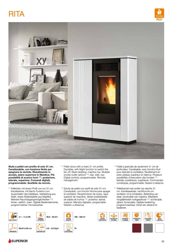 Stufa a pellet con profilo di solo 31 cm.