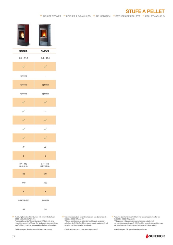 calorífico de 5 kWh/kg. El consumo puede variar según el