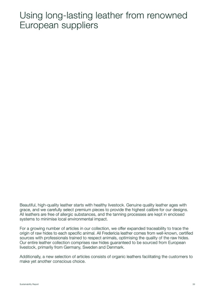 origin of raw hides to each specific animal. All Fredericia leather comes from well-known, certified