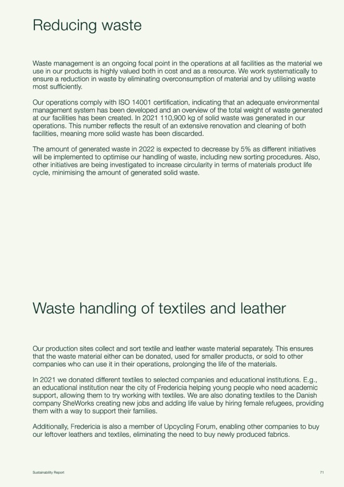 Our production sites collect and sort textile and leather waste material separately. This ensures