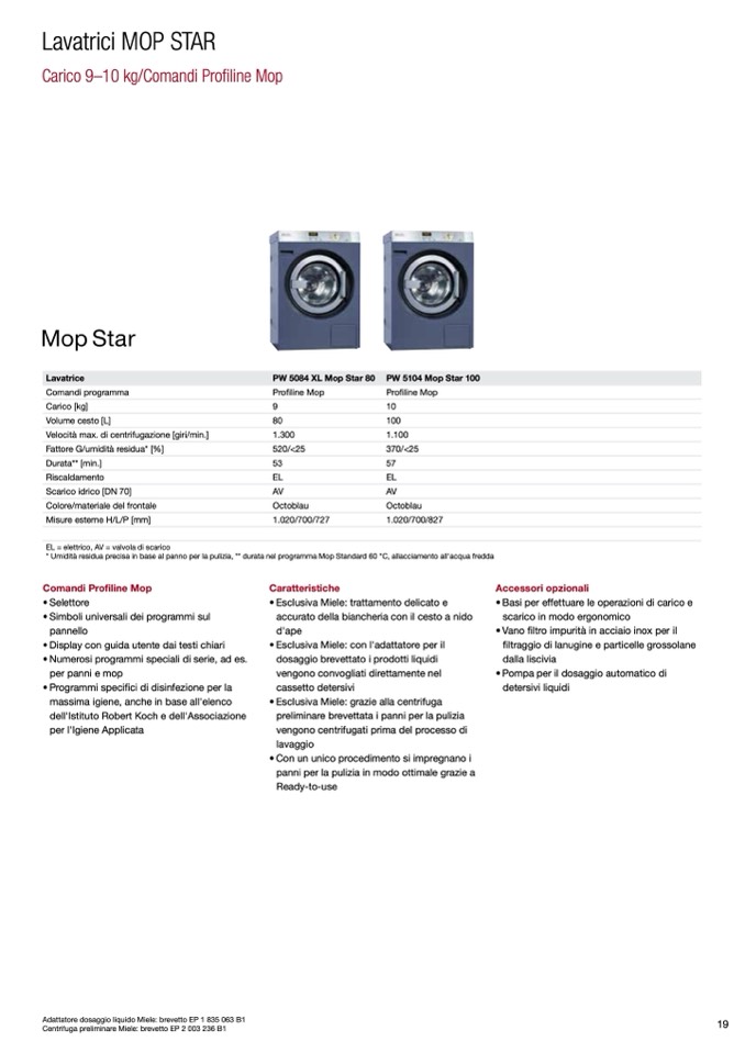 * Umidità residua precisa in base al panno per la pulizia, ** durata nel programma Mop Standard 60 °C, allacciamento all'acqua fredda