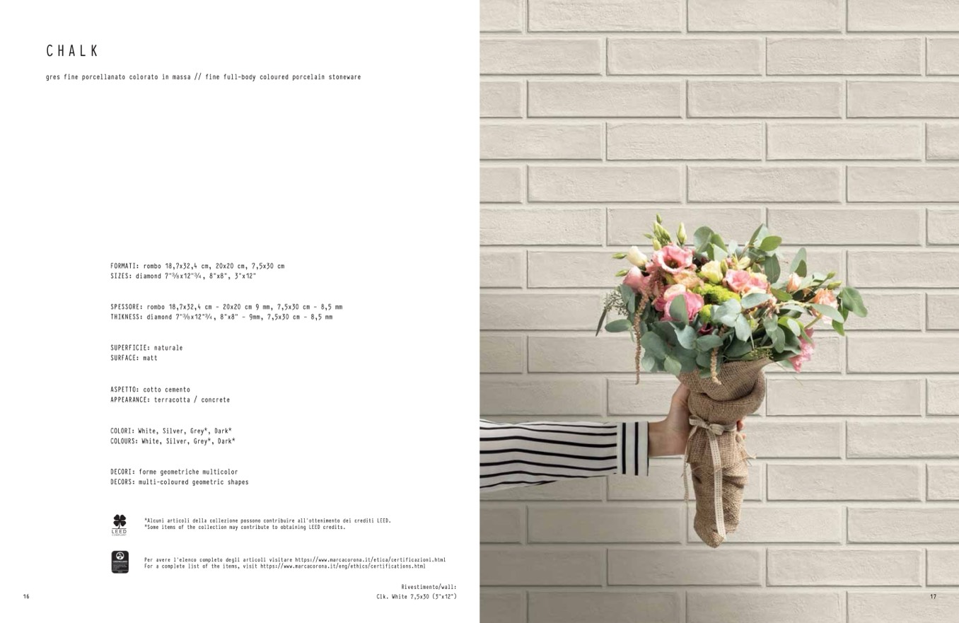 FORMATI: rombo 18,7x32,4 cm, 20x20 cm, 7,5x30 cm
