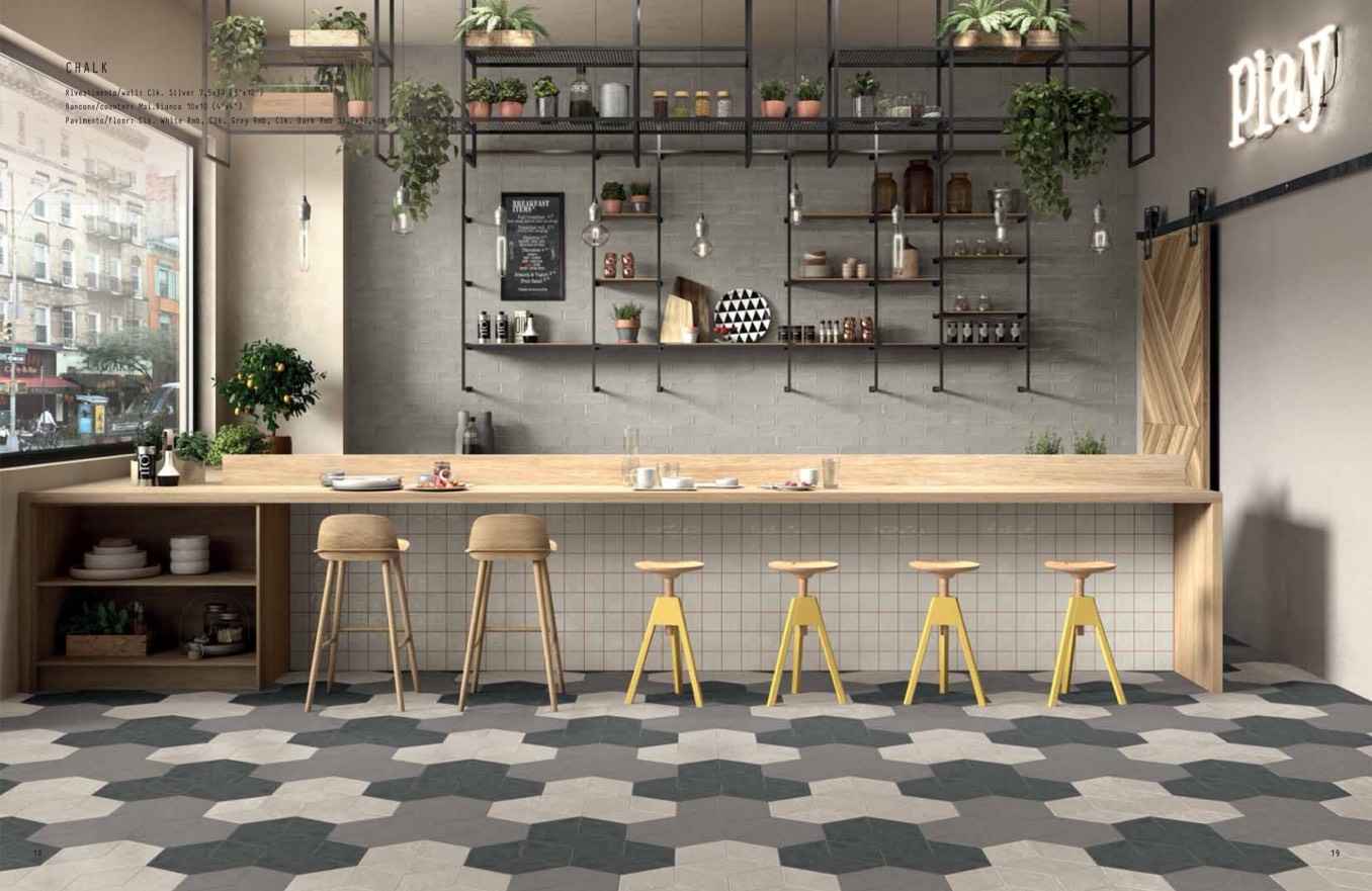Pavimento/floor: Clk. White Rmb, Clk. Grey Rmb, Clk. Dark Rmb 18,7x32,4cm (7”