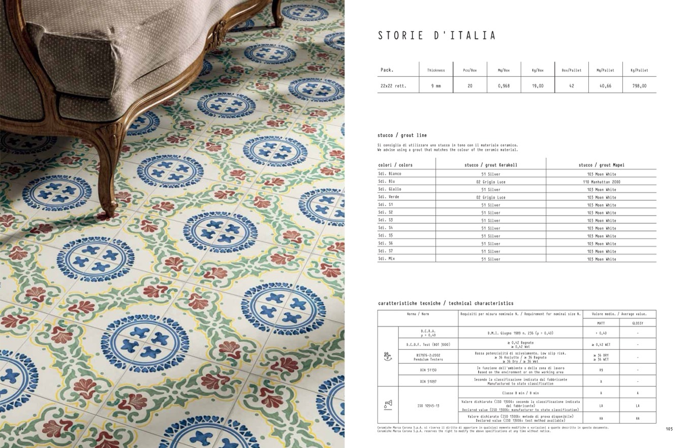 Ceramiche Marca Corona S.p.A. reserves the right to modify the above specifications at any time without notice.
