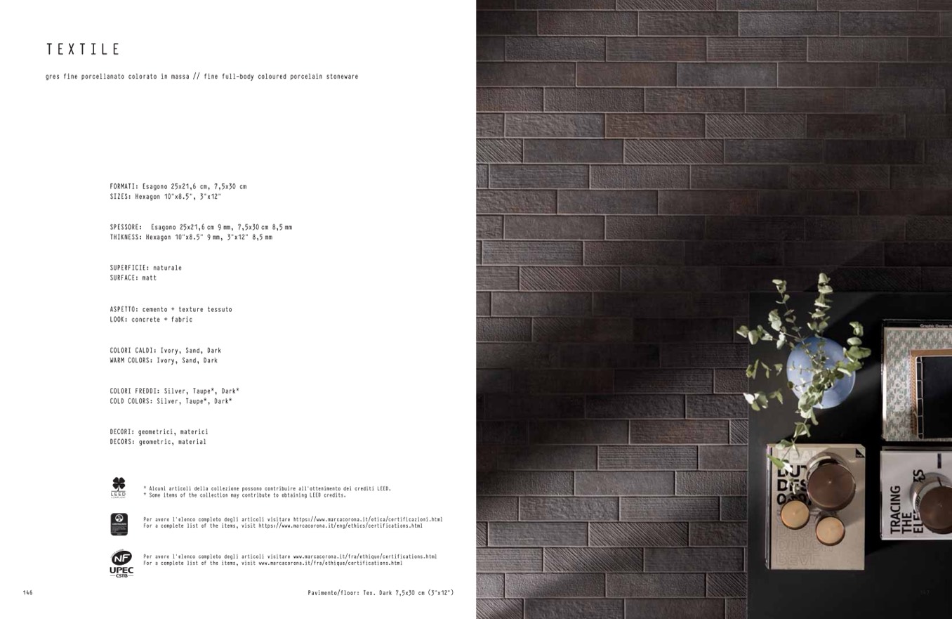 Pavimento/floor: Tex. Dark 7,5x30 cm (3”x12”)
