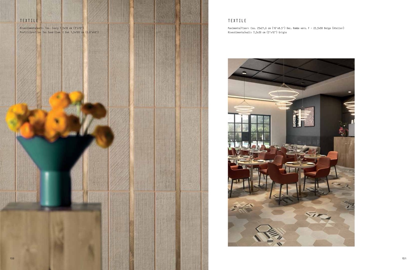Pavimento/floor: Esa. 25x21,6 cm (10”x8.5”) Dec. Rombo vers. F - 22,5x90 Beige (Atelier)