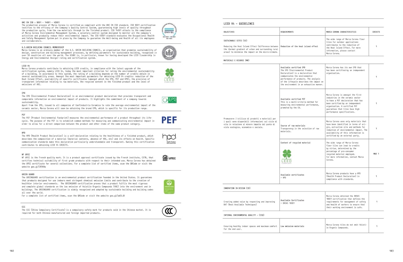 Marca Corona products contribute to obtaining LEED credits, in compliance with the latest upgrade of the