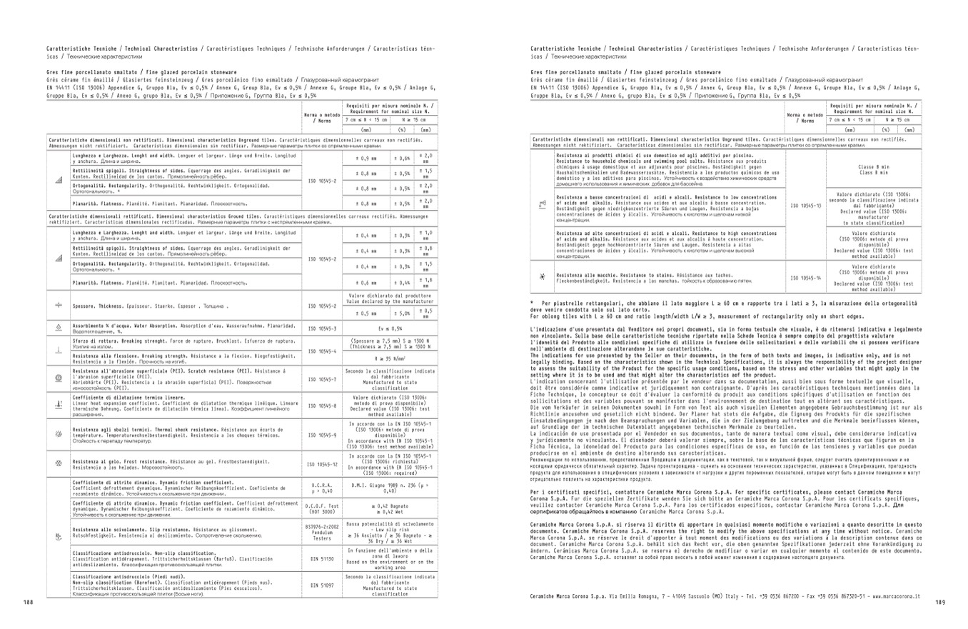 Per i certificati specifici, contattare Ceramiche Marca Corona S.p.A. For specific certificates, please contact Ceramiche Marca