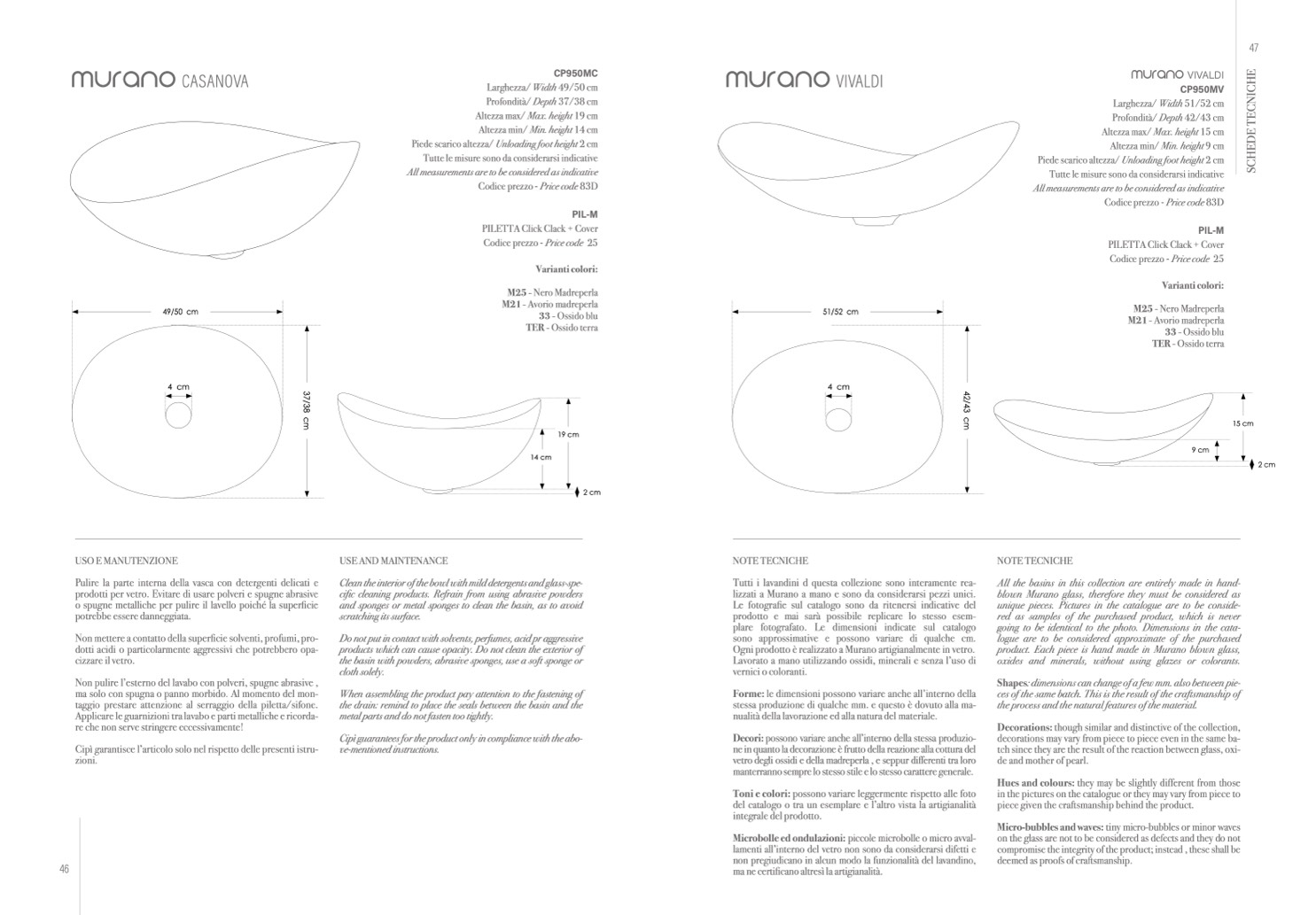 del catalogo o tra un esemplare e l’altro vista la artigianalità