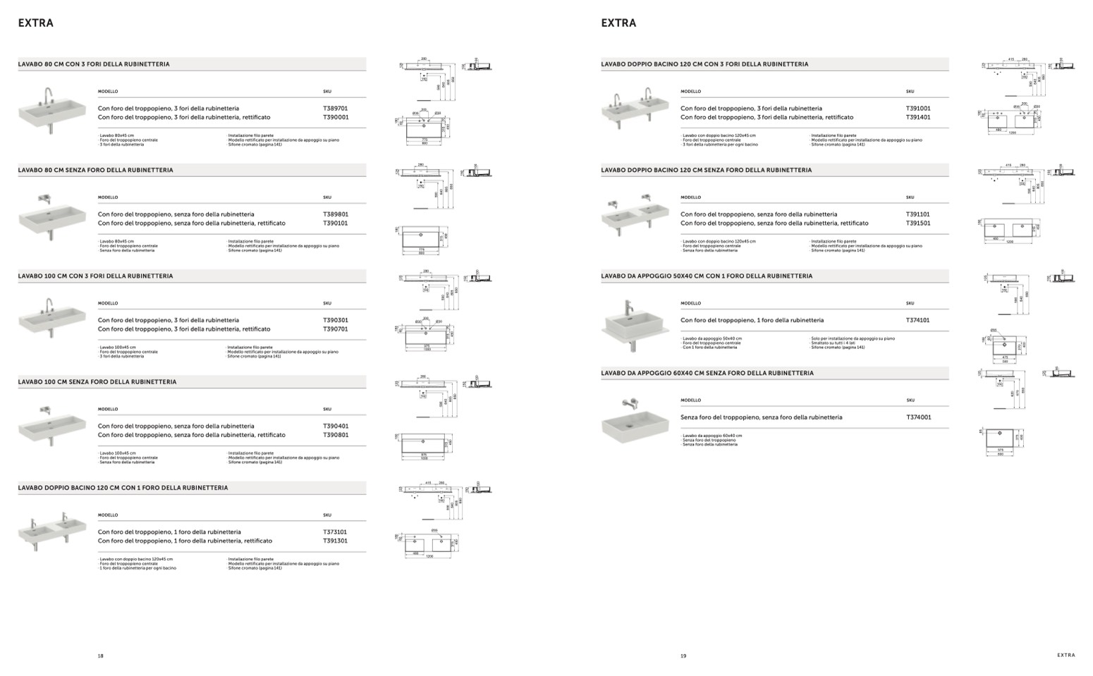 LAVABO 80 CM SENZA FORO DELLA RUBINETTERIA