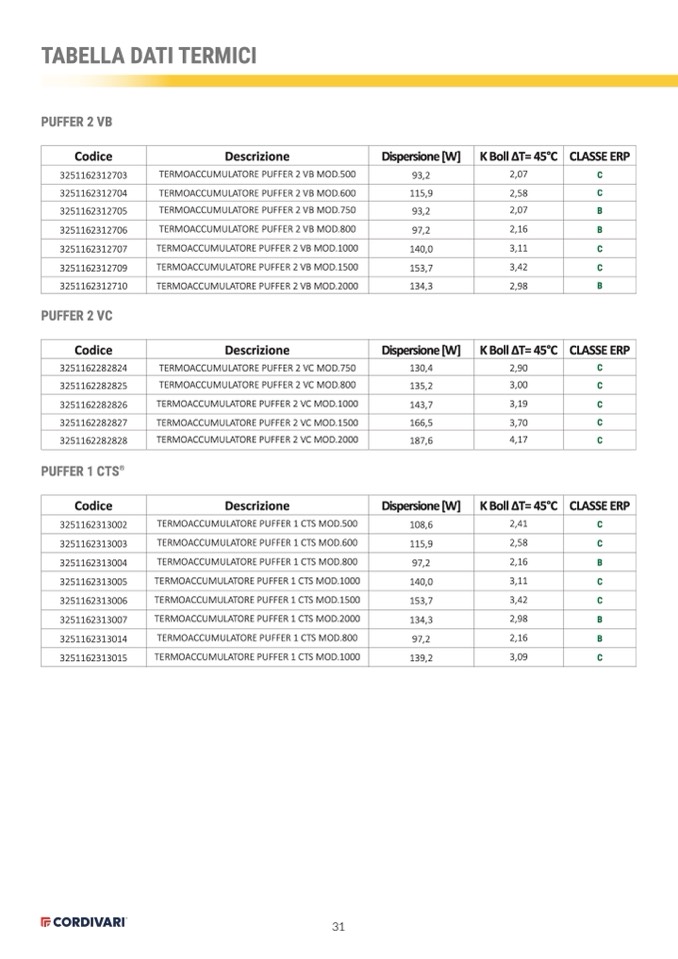 TABELLA DATI TERMICI