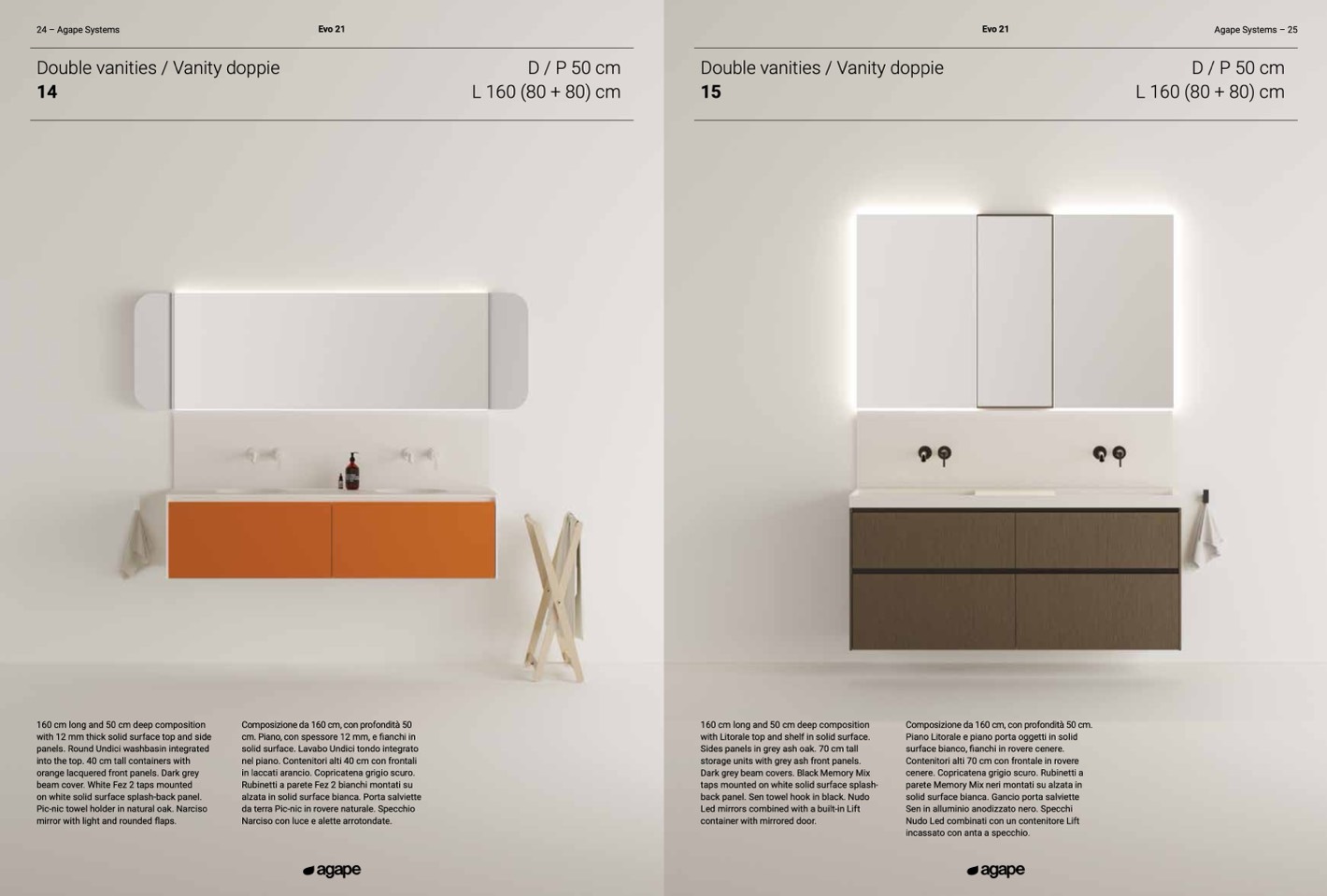 Composizione da 160 cm, con profondità 50 cm.