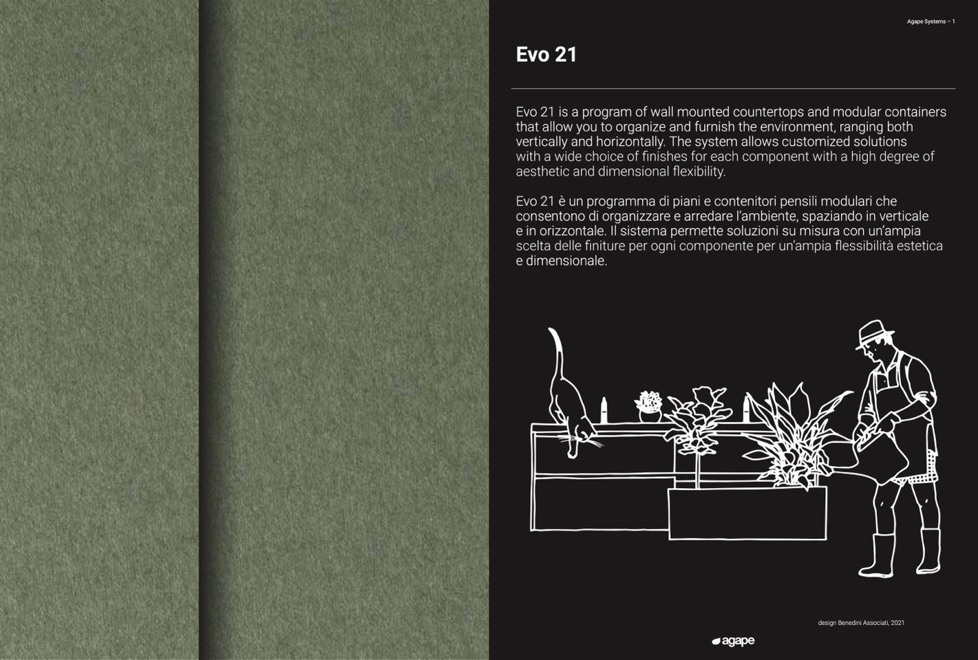 Evo 21 is a program of wall mounted countertops and modular containers