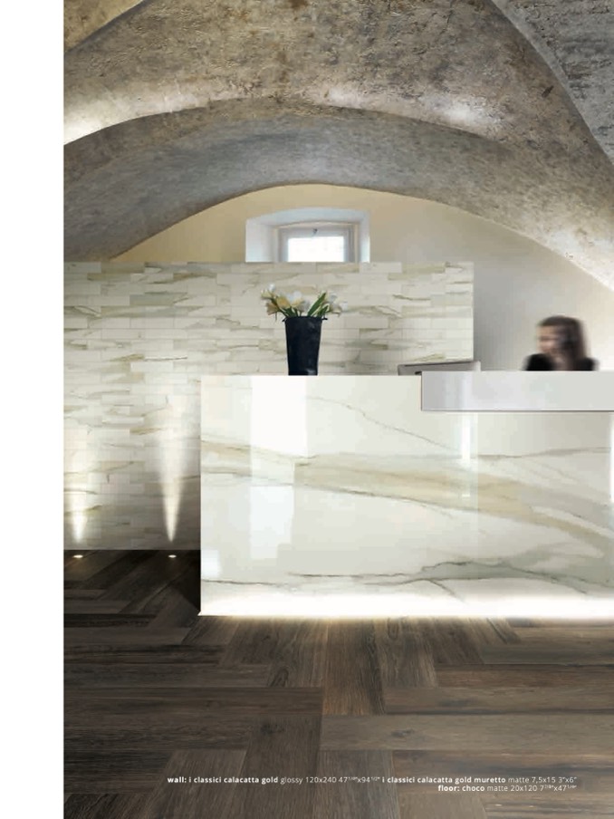 wall: i classici calacatta gold glossy 120x240 471/4”x941/2” i classici calacatta gold muretto matte 7,5x15 3”x6
