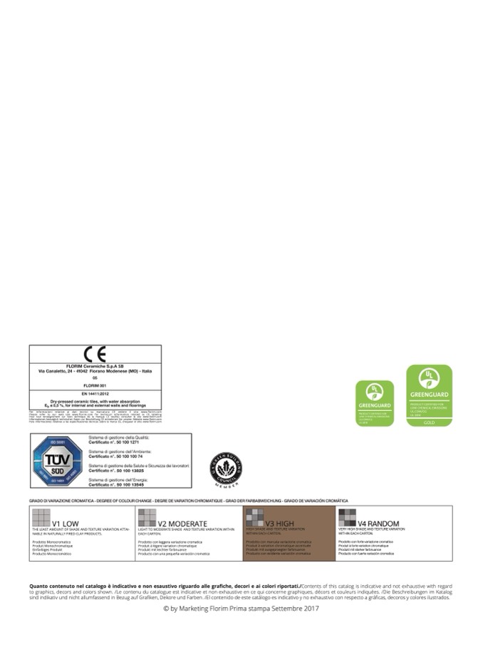 Per informazioni relative ai dati tecnici su marcatura CE vedere il sito www.florim.co