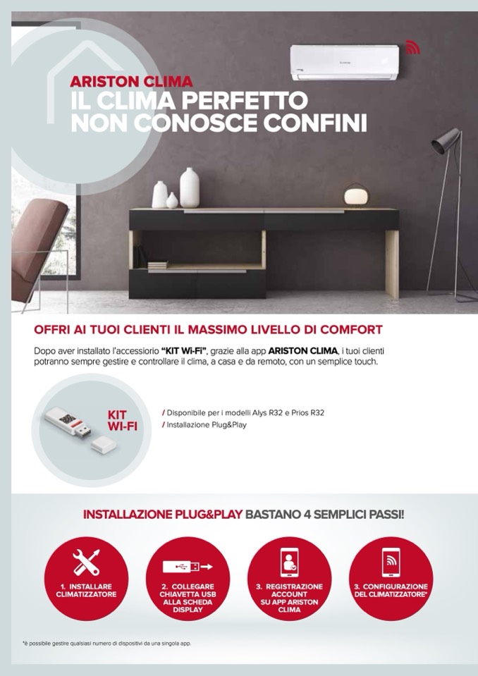 Dopo aver installato l’accessiorio “KIT Wi-Fi”, grazie alla app ARISTON CLIMA, i tuoi clienti