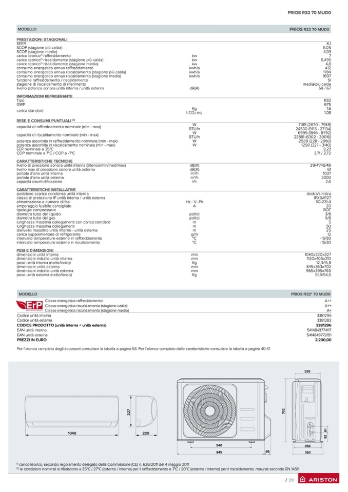CODICE PRODOTTO (unità interna + unità esterna)