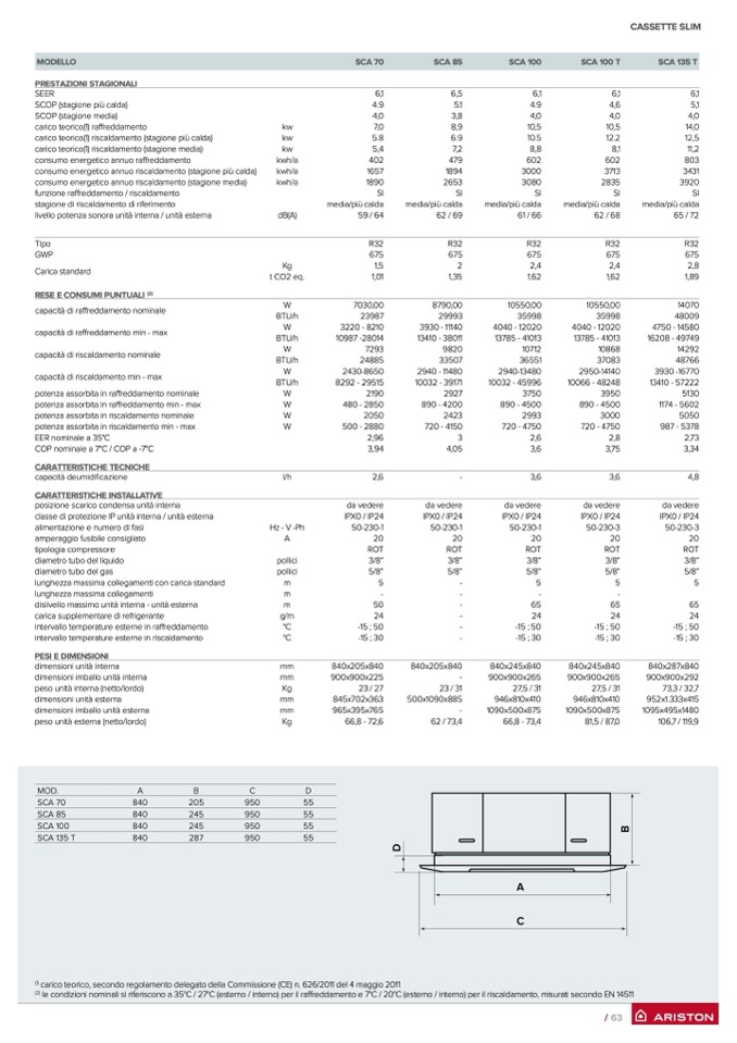 le condizioni nominali si riferiscono a 35°C / 27°C (esterno / interno) per il ra