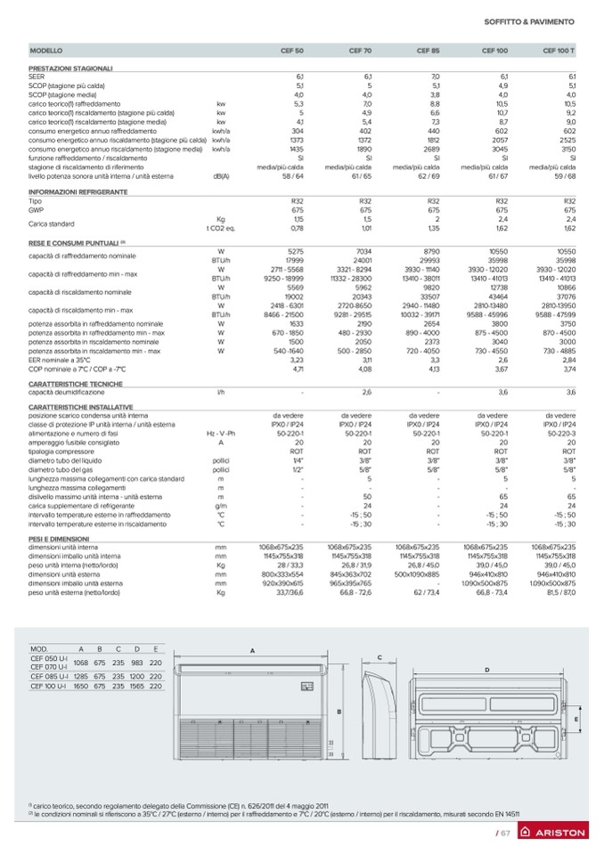 le condizioni nominali si riferiscono a 35°C / 27°C (esterno / interno) per il ra