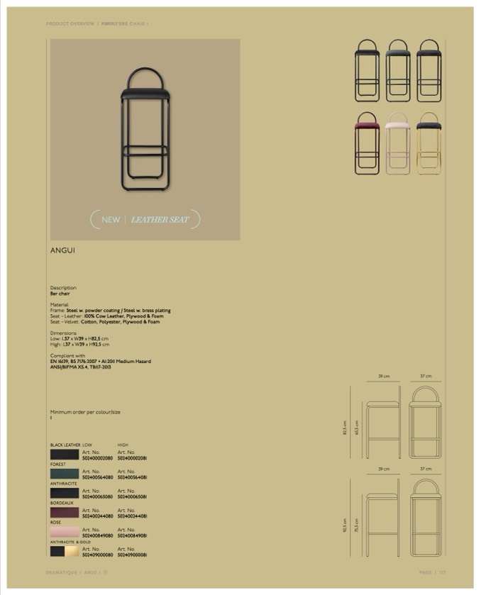 Seat ~ Leather: 100% Cow Leather, Plywood & Foam