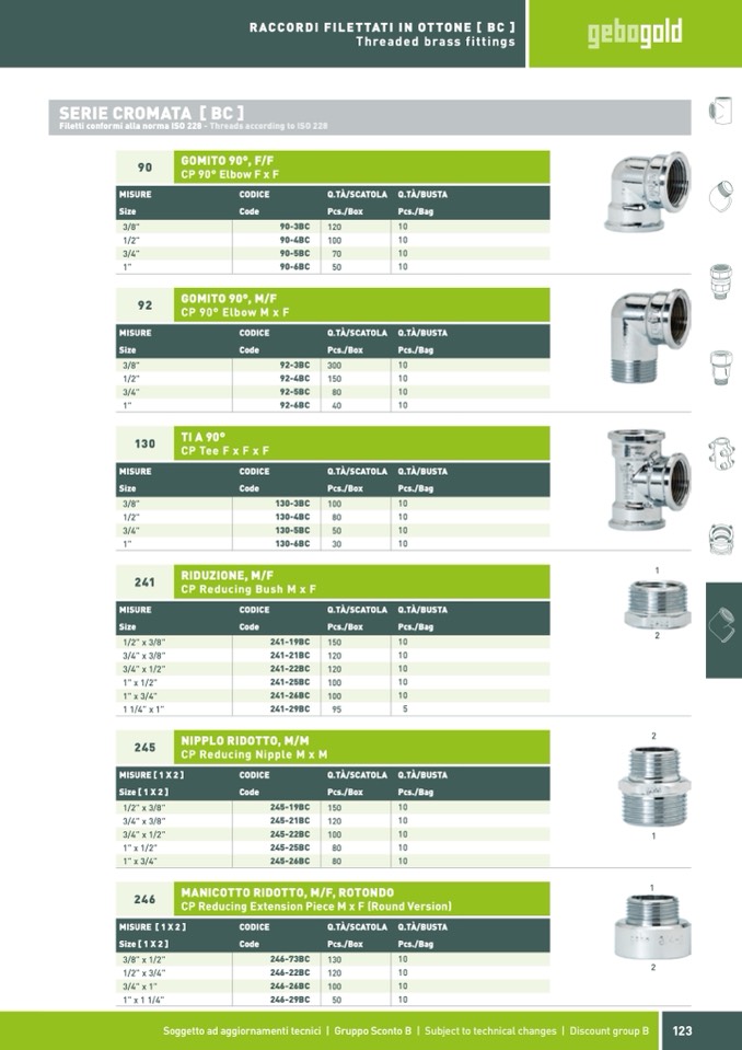 Filetti conformi alla norma ISO 228 - Threads according to ISO 228