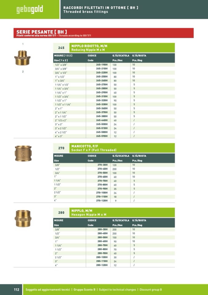 Filetti conformi alla norma ISO 7/1 - Threads according to ISO 7/1