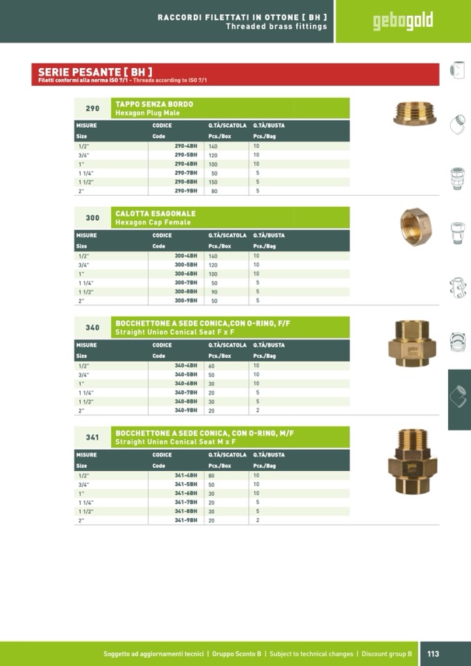 Filetti conformi alla norma ISO 7/1 - Threads according to ISO 7/1