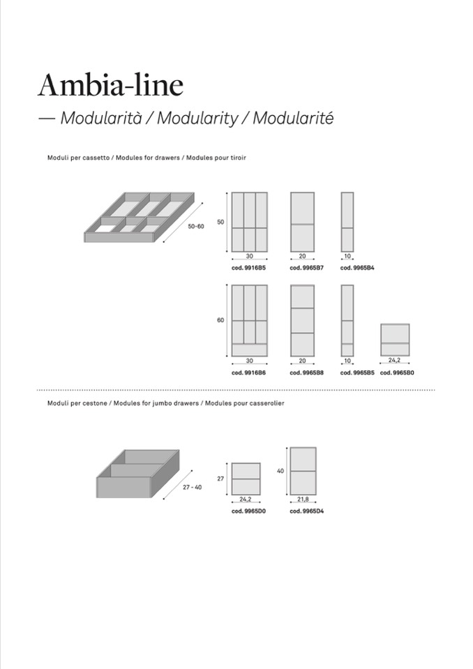 Moduli per cestone / Modules for jumbo drawers / Modules pour casserolier