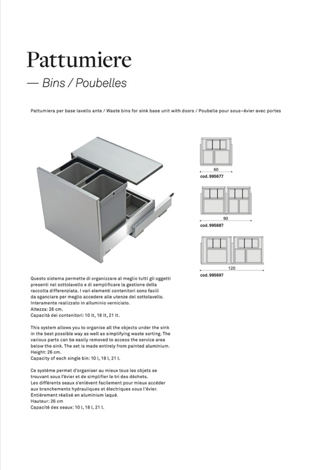 Pattumiera per base lavello ante / Waste bins for sink base unit with doors / Poubelle pour sous–évier avec portes