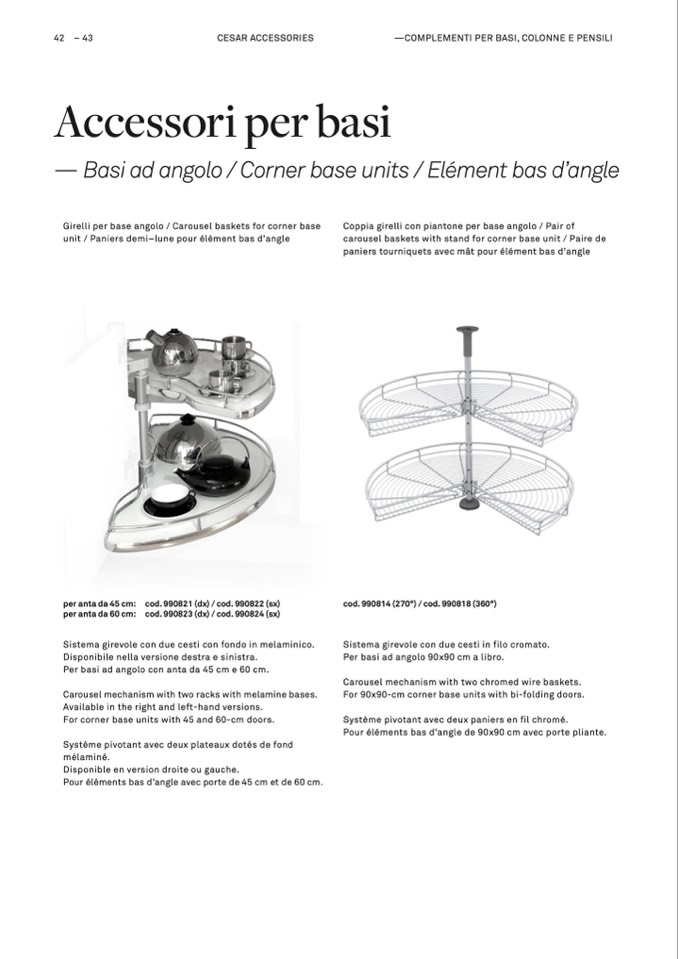 Girelli per base angolo / Carousel baskets for corner base