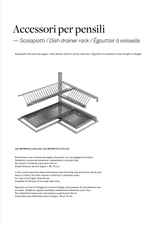Scolapiatti due piani ad angolo / Dish drainer rack for corner, two tiers / Égouttoir à vaisselle en inox d’angle à 2 étages