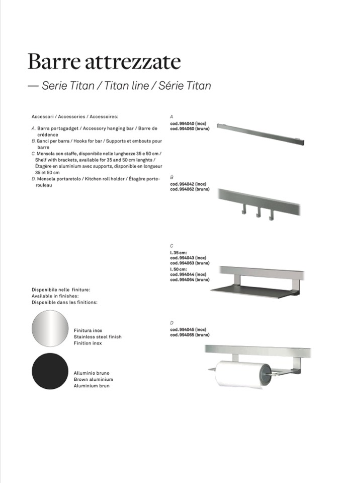C. Mensola con staffe, disponibile nelle lunghezze 35 e 50 cm /