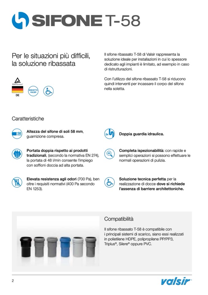 Il sifone ribassato T-58 è compatibile con