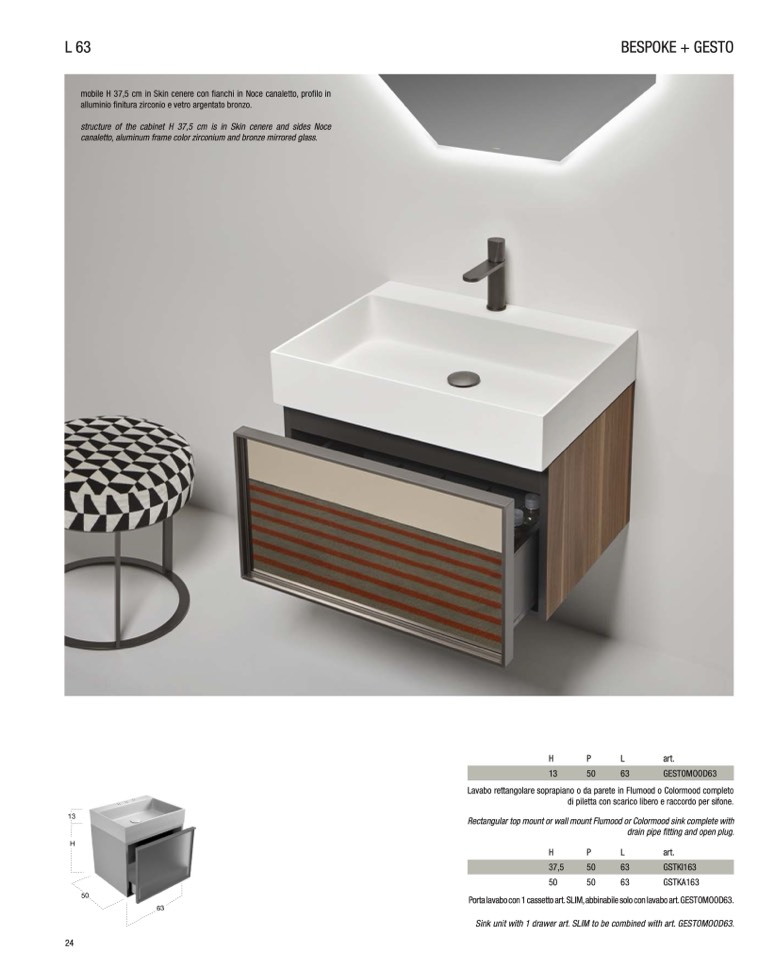 Porta lavabo con 1 cassetto art. SLIM, abbinabile solo con lavabo art. GESTOMOOD63.