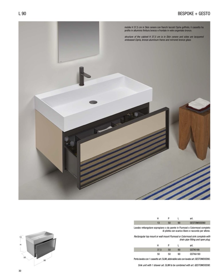 Porta lavabo con 1 cassetto art. SLIM, abbinabile solo con lavabo art. GESTOMOOD90.