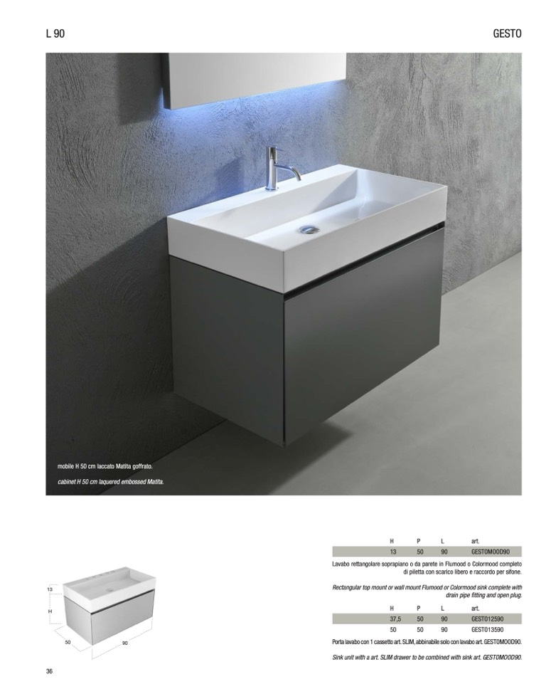 Porta lavabo con 1 cassetto art. SLIM, abbinabile solo con lavabo art. GESTOMOOD90.
