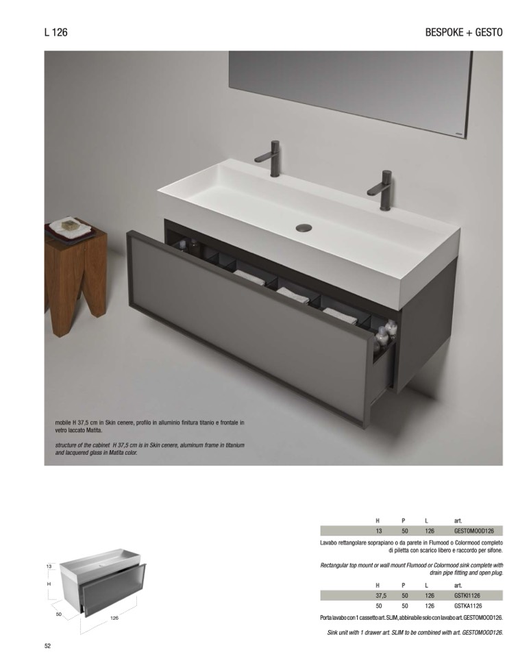 Sink unit with 1 drawer art. SLIM to be combined with art. GESTOMOOD126.