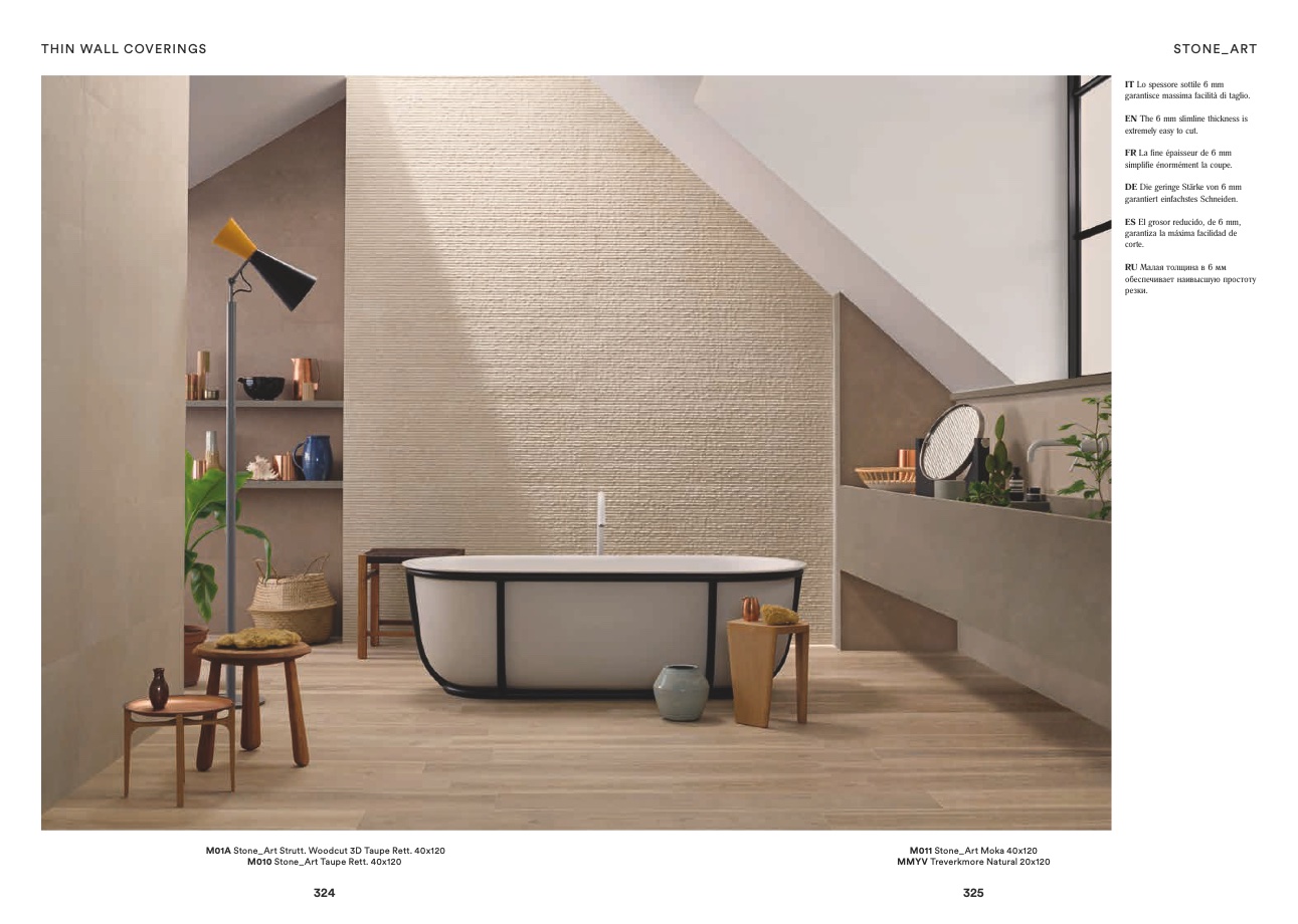 M01A Stone_Art Strutt. Woodcut 3D Taupe Rett. 40x120